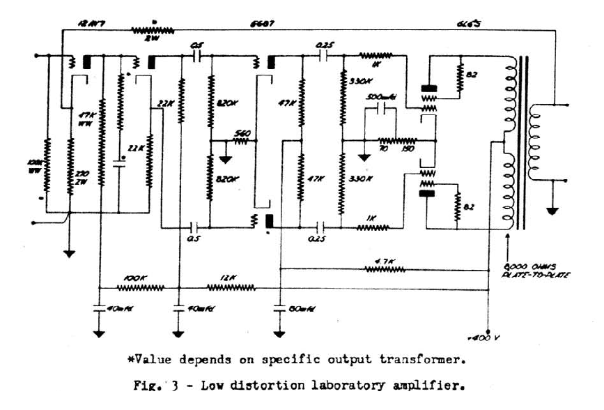 Amplificador tipo Williamsom triodo com cancelamento de 3º Harmônico.