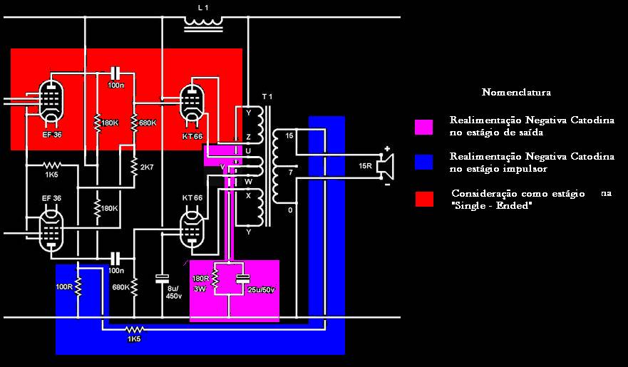 Em primeiro lugar a PYE adotou-se a configuração de realimentação parcial “Q.U.A.D.” caso x=n pois o enrolamento para alto falantes não era suficiente para a realimentação desejada.