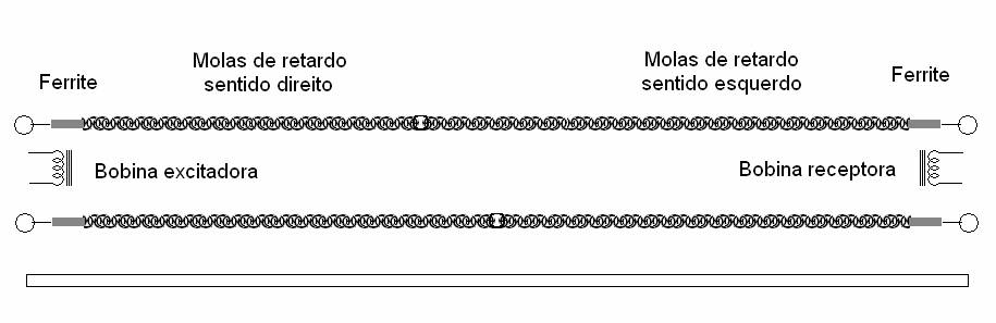 Fig 5: Diagrama esquemático do reverberador de molas. As molas possuem comprimentos diferenciados para proporcionar tempos diferentes de retardo criando múltiplos pontos de repetição.