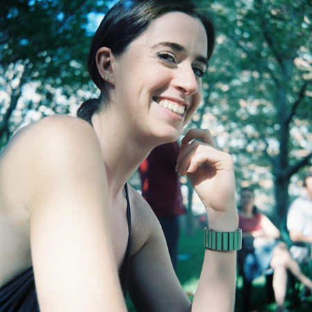 The Lubitel+’s viewfinder is on the top of the camera and enclosed by a pop-up metal hood. You compose your image by peering down into this and adjusting the focus knob. This has the triple bonus of (1) making your composition & shooting a bit slower and more thoughtful, (2) giving you a large surface to compose your image on (rather than a tiny viewfinder), and (3) allowing you to shoot all sorts of candid shots. When you’re staring at your feet, most folks don’t even realize you’re pointing the camera at them.