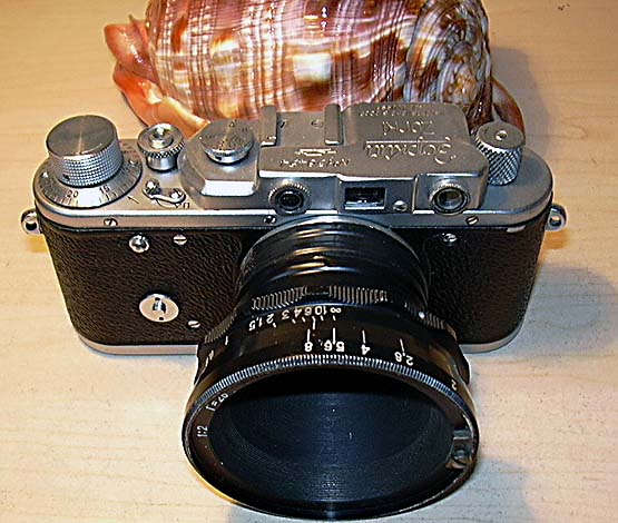 teleconverter at a sea shell at the back of the Zorki 1. It is a sharp lens