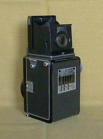 Model V no rewind variation. Shoe and Rollei style exposure guide.
