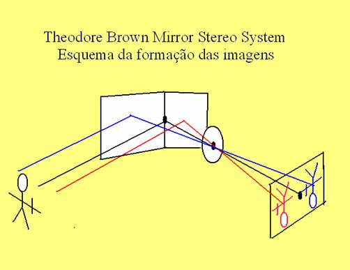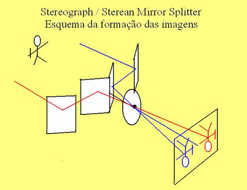 Para compreensão do principio de funcionamento dos sistemas virtuais de estereoscopia, damos abaixo o diagrama da trajetória dos raios luminosos nos adaptadores apresentados